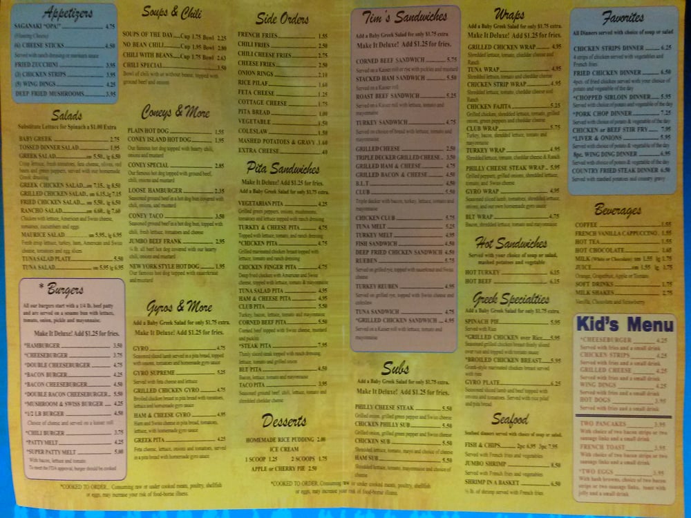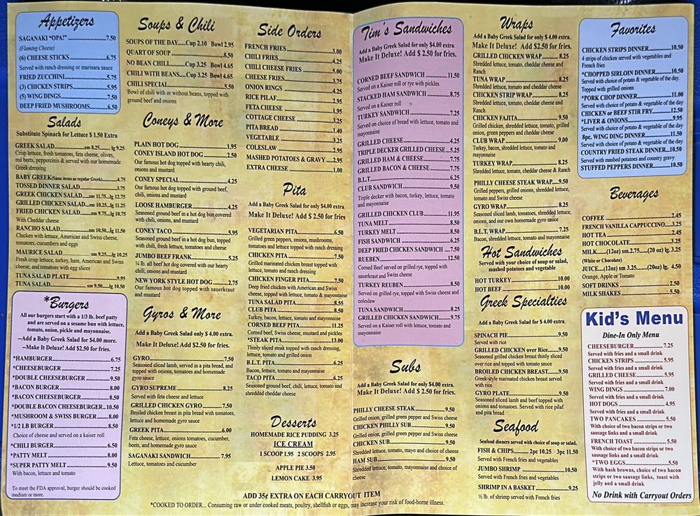 Tim's Coney Island Restaurant Menu (2025 Update)